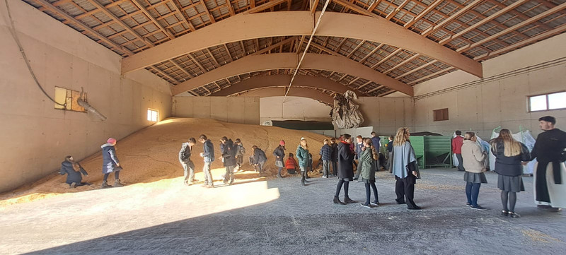 Besonders beeindruckend waren natürlich die große Hitze bei der Trocknung des Mais, die riesigen Traktoren und die Silos, die den getrockneten Mais dann speichern und der 12 m breiter Grubber zum Bearbeiten der Felder. Es gab verschiedene Getreidesorten zu kosten und zu knabbern. Auch das Wetter spielte mit, wir gingen bei strahlendem Sonnenschein durch den Bio-Hof. Danach gab es noch ein kleines Völkerballmatch.