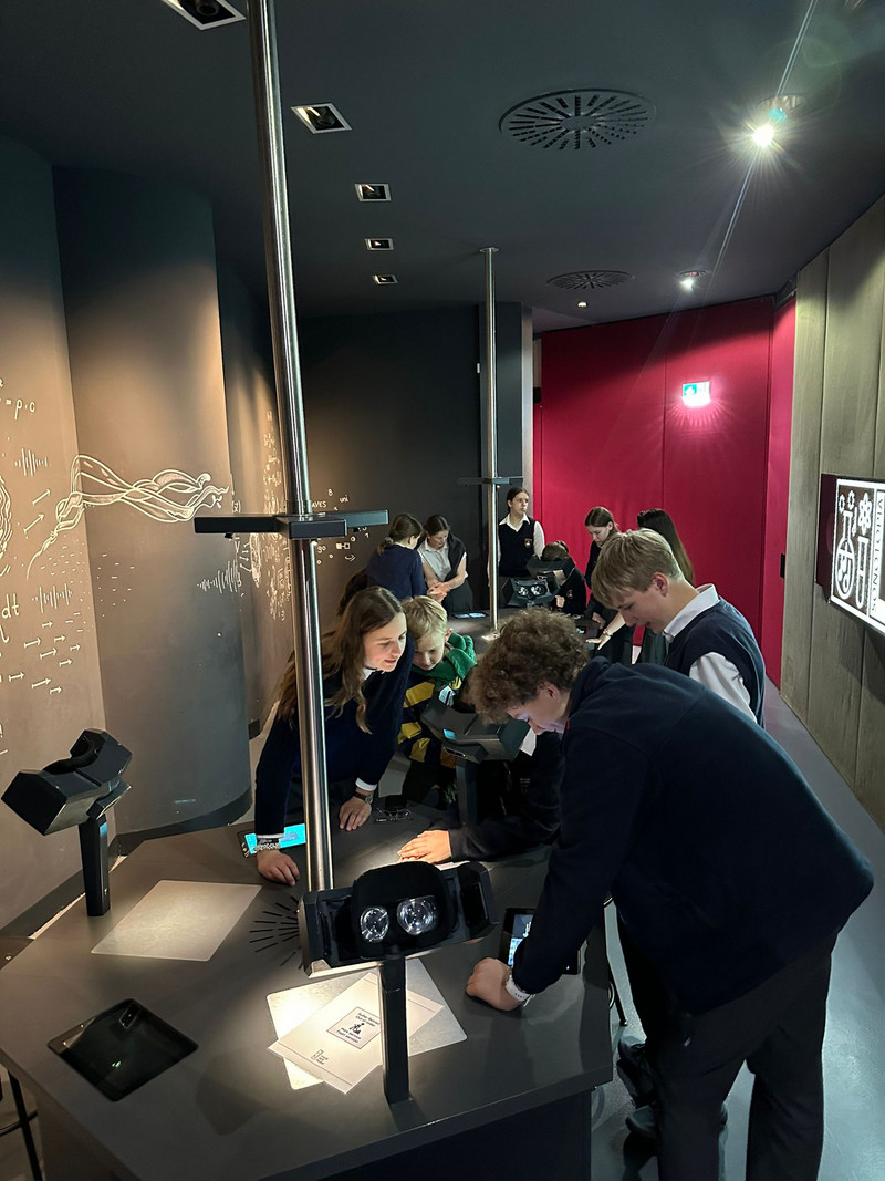 Im Haus der Musik erforschten die Schüler der 4. und 6. Klasse das physikalische Themengebiet der Akustik. Anhand verschiedener Experimente und Ausstellungen lernten sie, wie Schall durch Schwingungen entsteht, wie sich Schallwellen ausbreiten und wie Tonhöhe, Lautstärke und Klang physikalisch erklärt werden können.