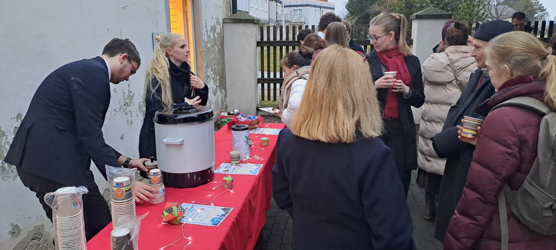 Beim anschließenden Punsch im Pavillon fanden sich spontan auch noch zahlreiche ehemalige Schülerinnen und Schüler ein.